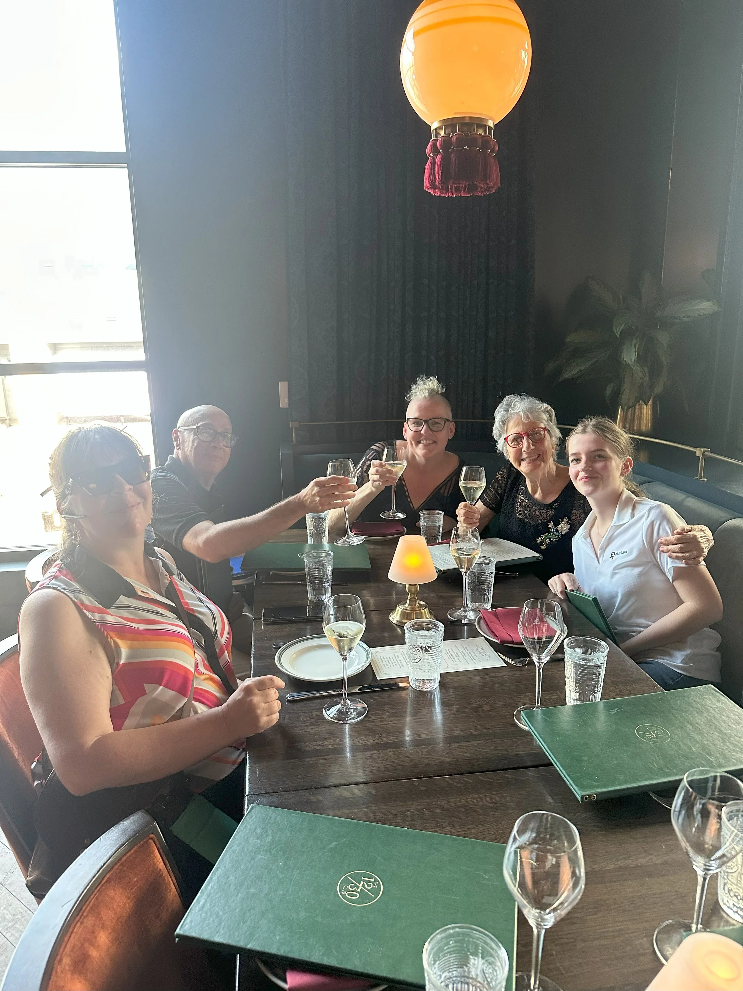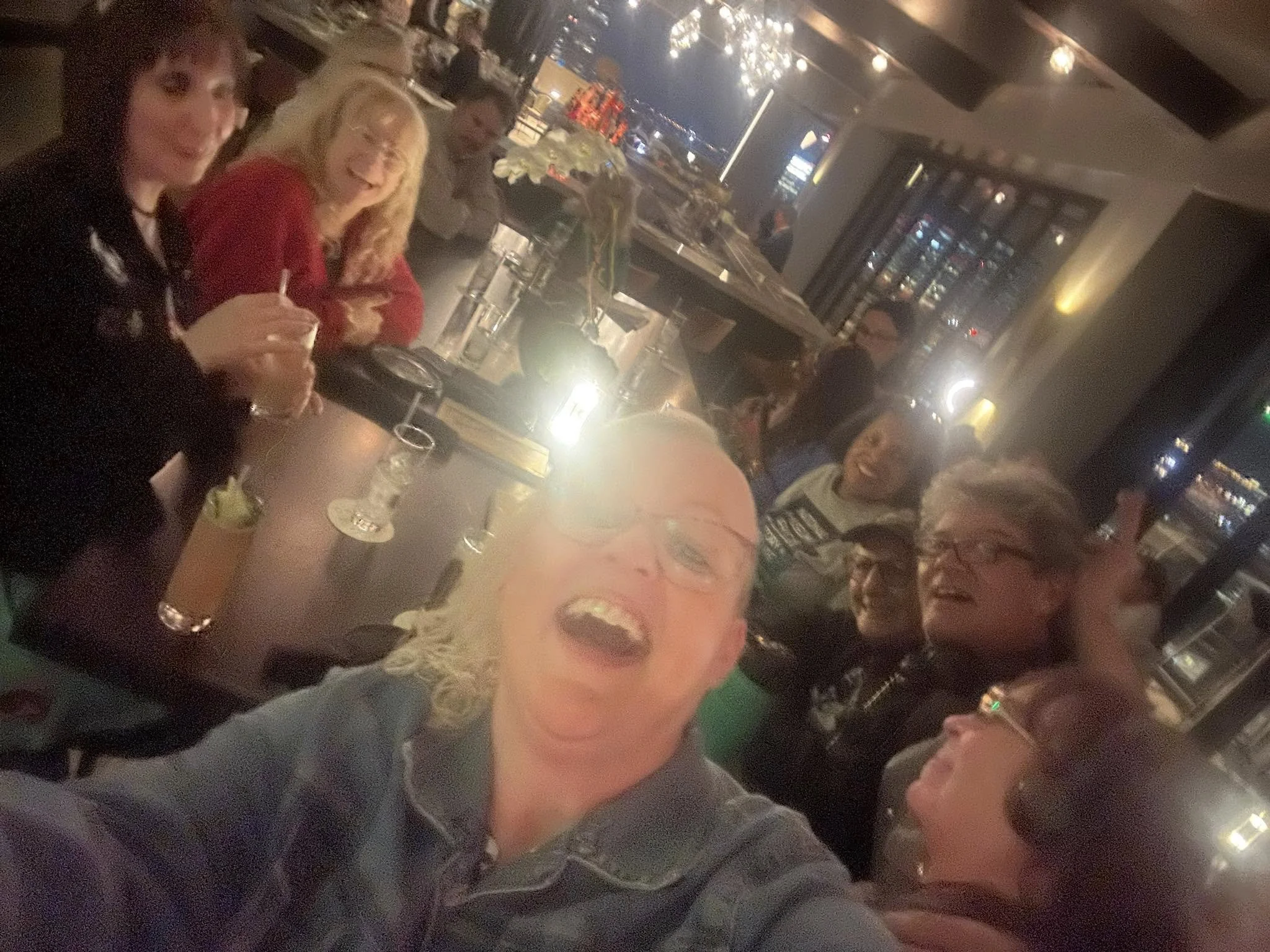 Image Description: Disabled to the Front and friends from the National Federation of the Blind party at Lou/Na at the Grand Hyatt on March 18, 2025. The group had just completed an iPhone skills training event hosted at Tennessee State University.