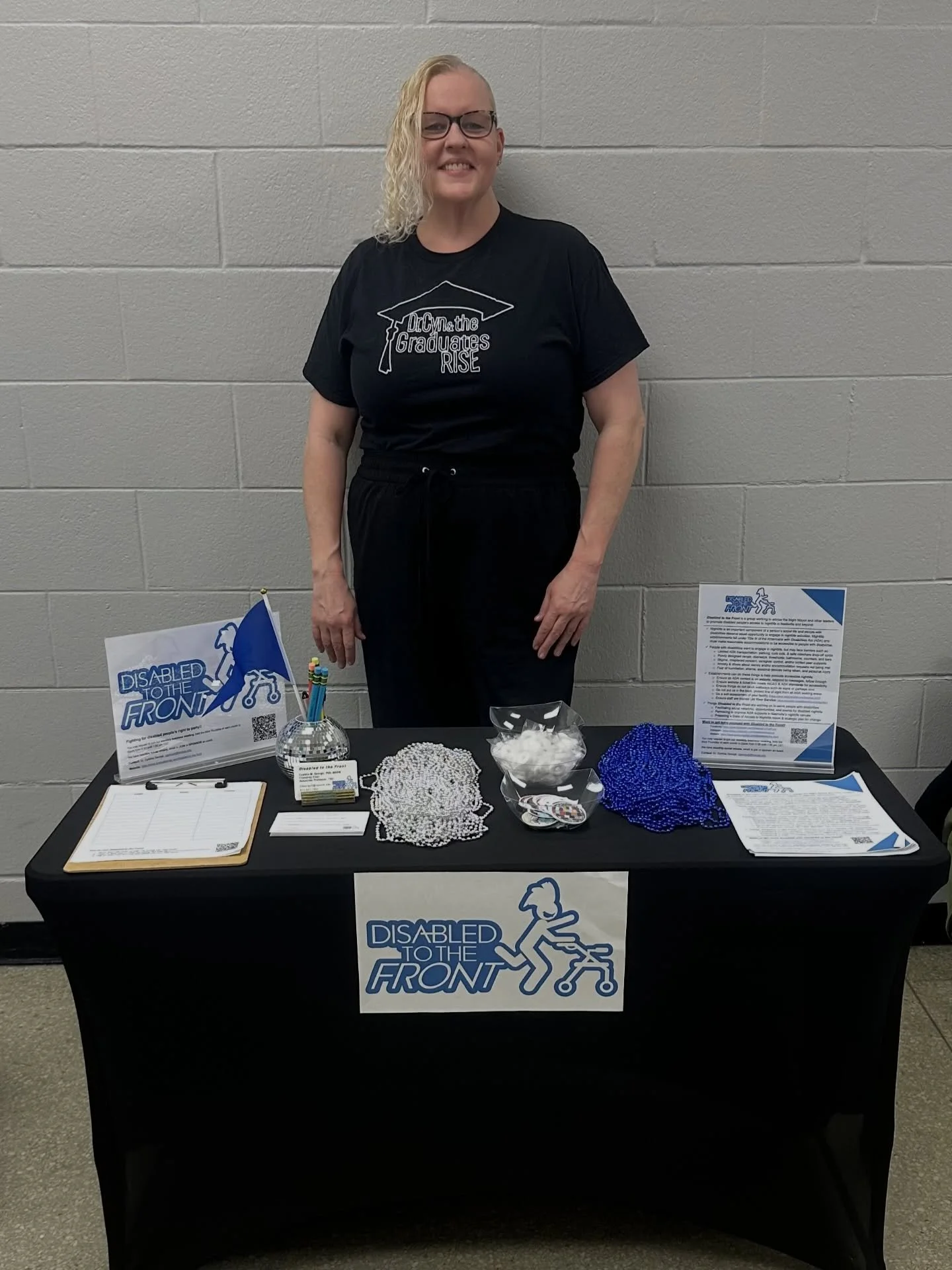 Dr. Cyn stands by the Disabled to the Front Exhibitor Table during the Hear the Music event with Mandy Harvey, hosted by the Nashville Talking Library, Feb 26, 2026.